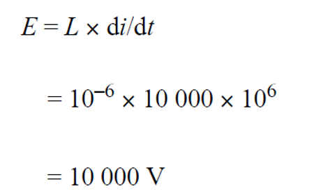 Actual values of di/dt range over wide limits, but a value of 10 kA/μs is representative. With such a rate of rise of current, even 1 μH of inductance can be significant [see Equation].