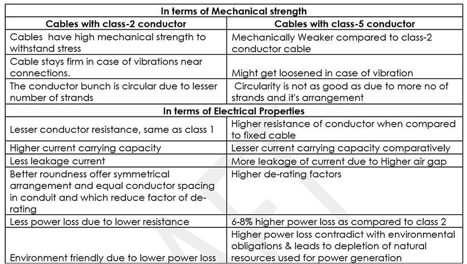 - The mechanical strength of insulation for class 5 is lesser in comparison to class 2, this can lead to issues during conduit pull