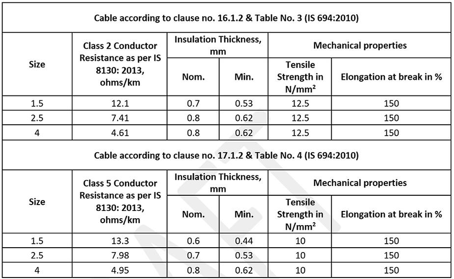 - For fixed wiring application conductors with Class 2 copper shall be used. This shall be specified by electrical designers in the respective tenders.